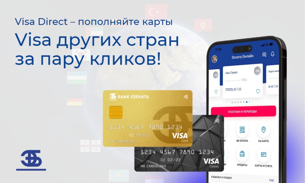 Отличная новость для клиентов "Банка Эсхата" — теперь вы можете пополнить карты Visa других стран через Visa Direct.