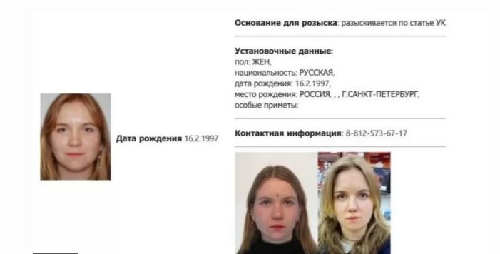 Утром в понедельник ориентировка на 26-летнюю петербурженку, чье имя называли в связи с возможной причастностью к гибели Татарского, появилась в базе розыска МВД.