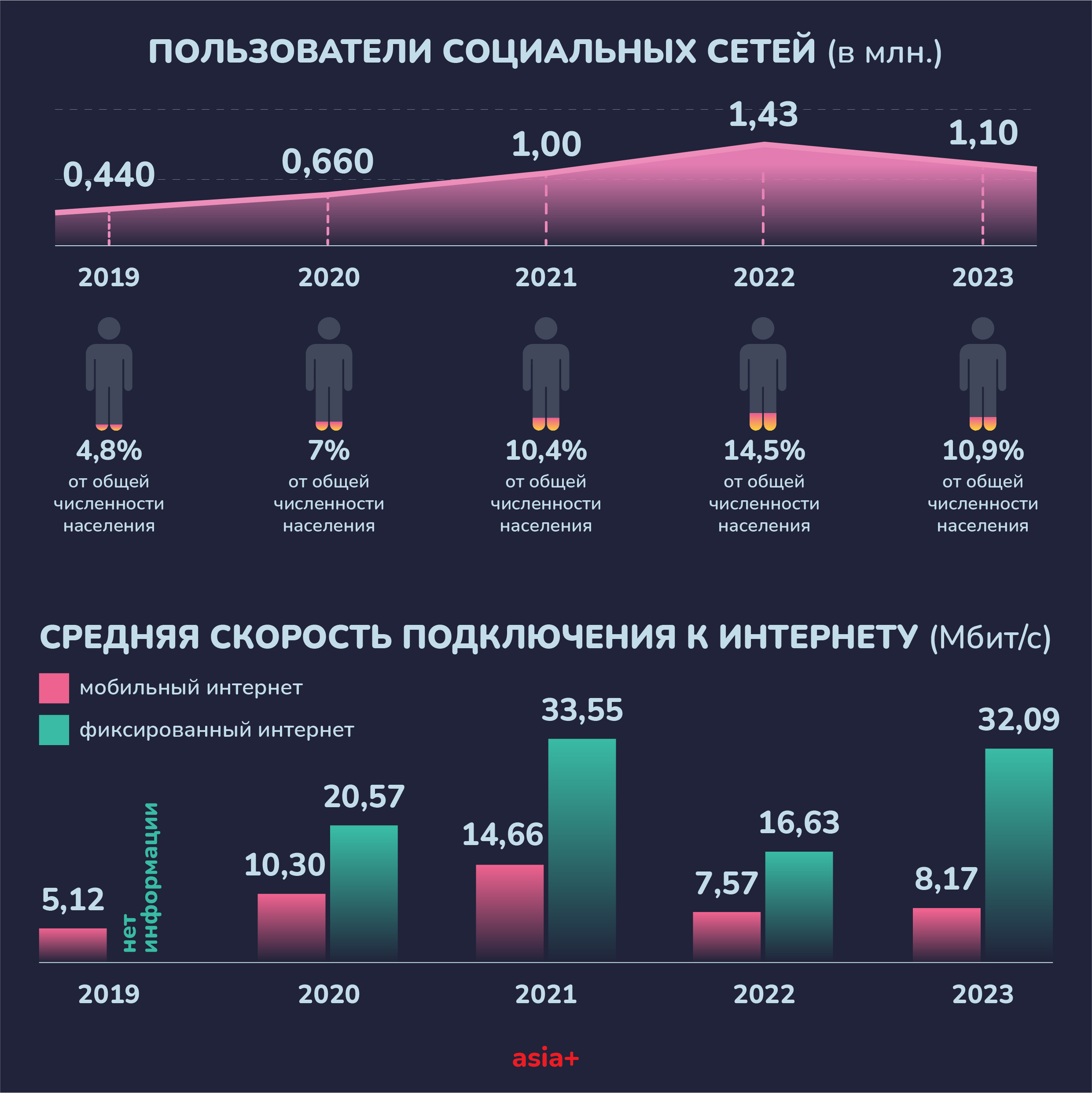 Сервис Datareportal ежегодно выпускает отчеты о цифровизации разных стран мира, в том числе и о Таджикистане. "Азия-Плюс" изучила пятилетнюю динамику развития Интернета в нашей стране.