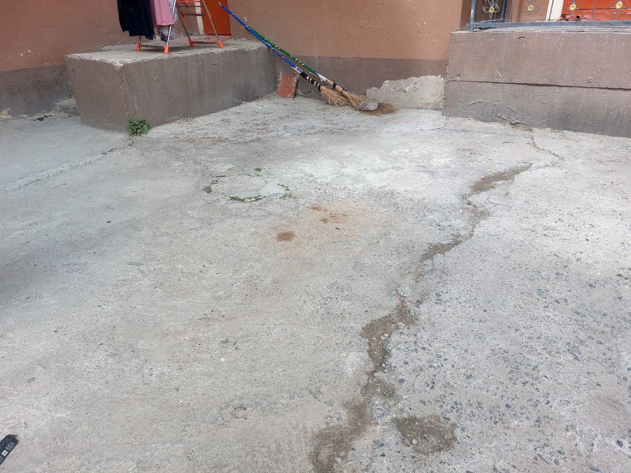 "Приходили проверяющие, всё проверяли. Нам сказали, что упали куски от дома, но я так и не понял, что упало — камень или кирпичи или что еще? Однажды здесь же куски кирпичей чуть ли не упали на моего младшего брата ", — говорит отец мальчика Рахмон.