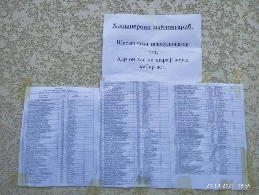 Следует отметить, что такого рода составление списка "отказников от службы" и его размещение в общественных местах в Таджикистане беспрецедентно, и ранее такой шаг со стороны чиновников в СМИ не освещался.