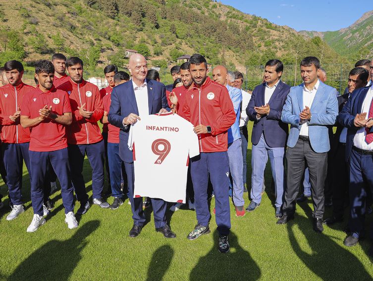 В строящемся центре президент ФИФА Джанни Инфантино встретился с игроками и тренерским штабом национальной сборной Таджикистана, а также сотрудниками Федерации футбола Таджикистана.