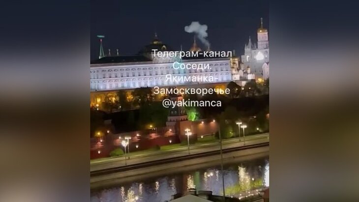 Ночью местный телеграм-канал "Соседи. Якиманка-Замоскворечье" сообщил о громком звуке и опубликовал видео поднимающегося дыма из Кремля.