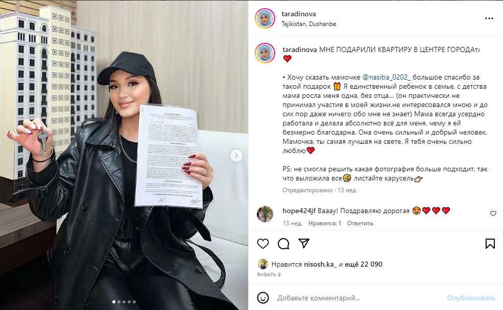 Сейчас Муаттара находится в Узбекистане, но и родной Душанбе она успела посетить: