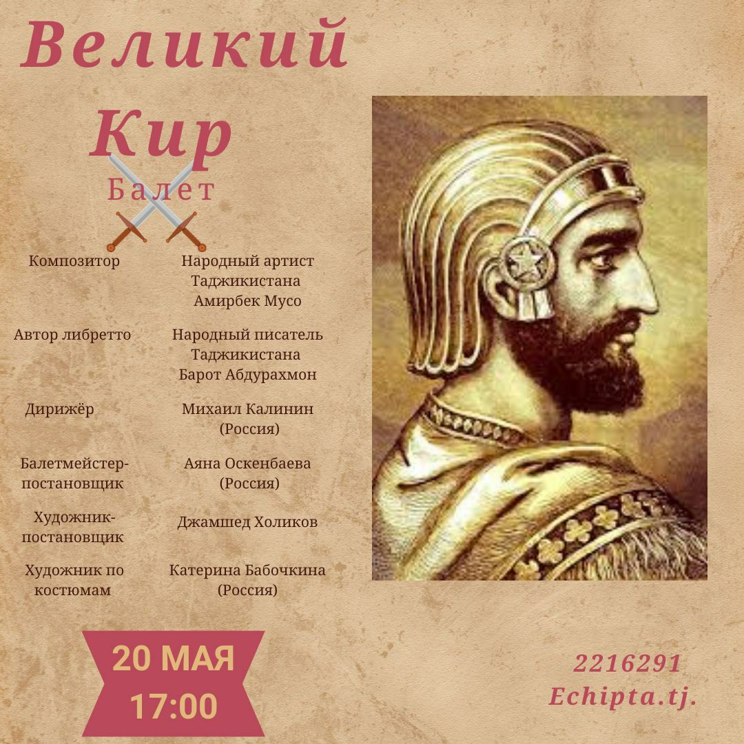 В Государственном академическом театре оперы и балета имени С. Айни 20 мая в 17:00 состоится премьера балетной постановки «Великий Кир».
