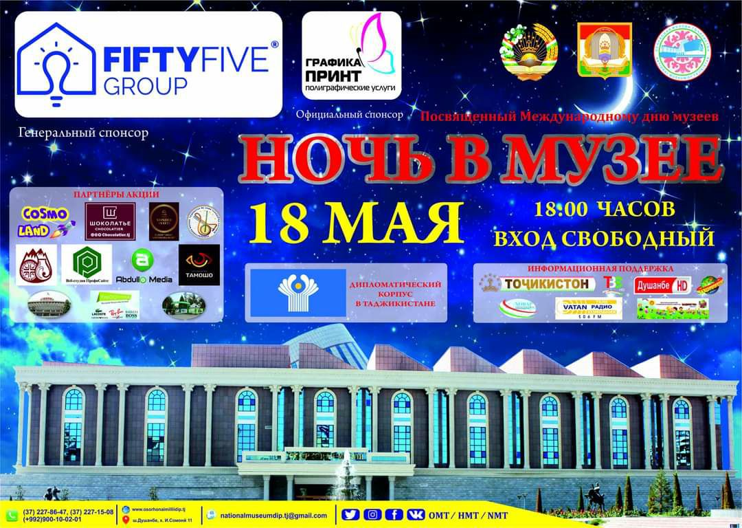 В Государственном национальном музее Таджикистана 18 мая в 18:00 состоится открытие масштабного мероприятия «Ночь в музее», которое продлится до 23:00.