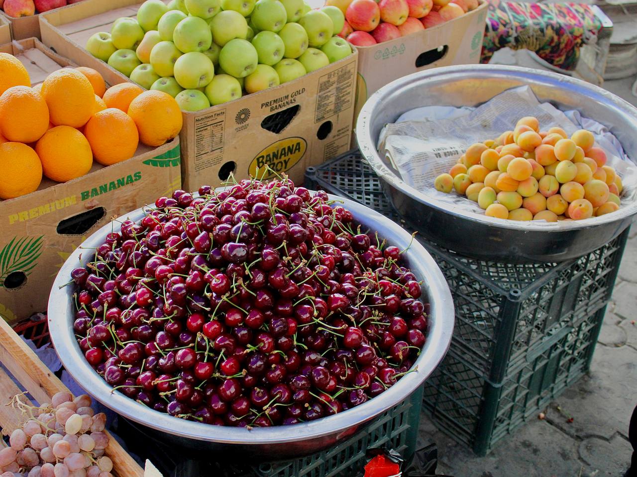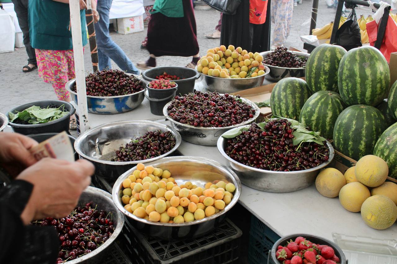Ведерко местной клубники на базарах Худжанда (1,8-2 кг) варьируется в пределах 20-23 сомони, привозная – около 30 сомони. Цена за килограмм черешни – 23-30 сомони. Ранний абрикос — 12-18 сомони.