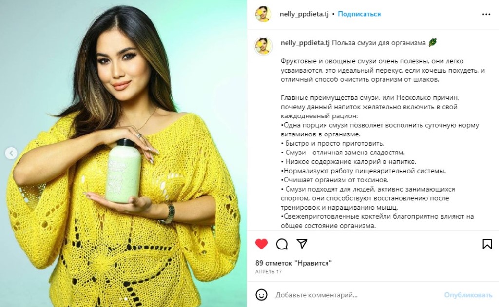 Еще больше, вы можете узнать на ее странице — nelly_ppdieta.tj