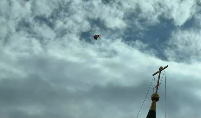 Летящий флаг в сине-жёлтых цветах заметили днём 12 мая. По данным канала, шары запустили люди, которые остановились на легковушке Opel у Красной площади. Сразу же после запуска они уехали.