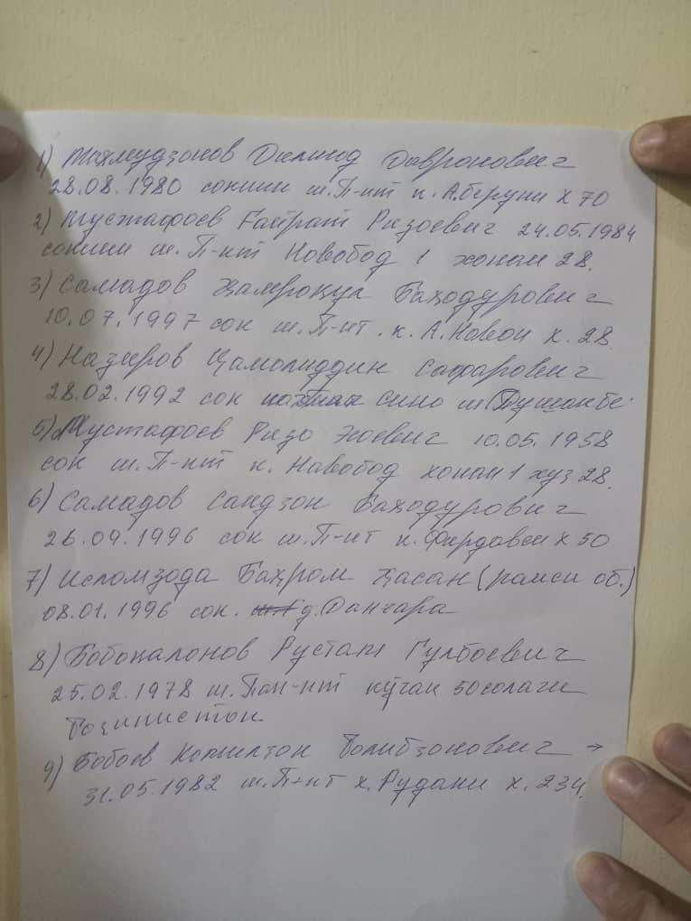 Начальник ГУП "Водоканал" Пенджикента Бахром Исломзода, был родом из Дангаринского района, и его тело было отправлено туда. Тело другого погибшего Джамолиддина Назирова, который тоже по словам источника был из Дангары, было отправлено на малую родину.