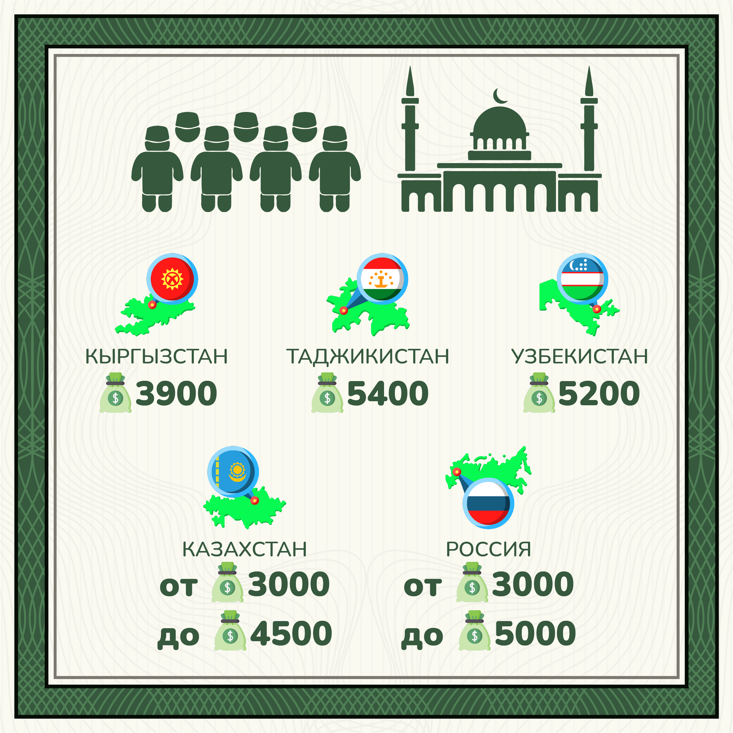 Эта сумма покрывает первоначальные расходы паломников в сезон хаджа, включая билеты туда и обратно, проживание в отеле в Мекке и Медине, траты на жертвоприношение, страховку и государственные сборы.