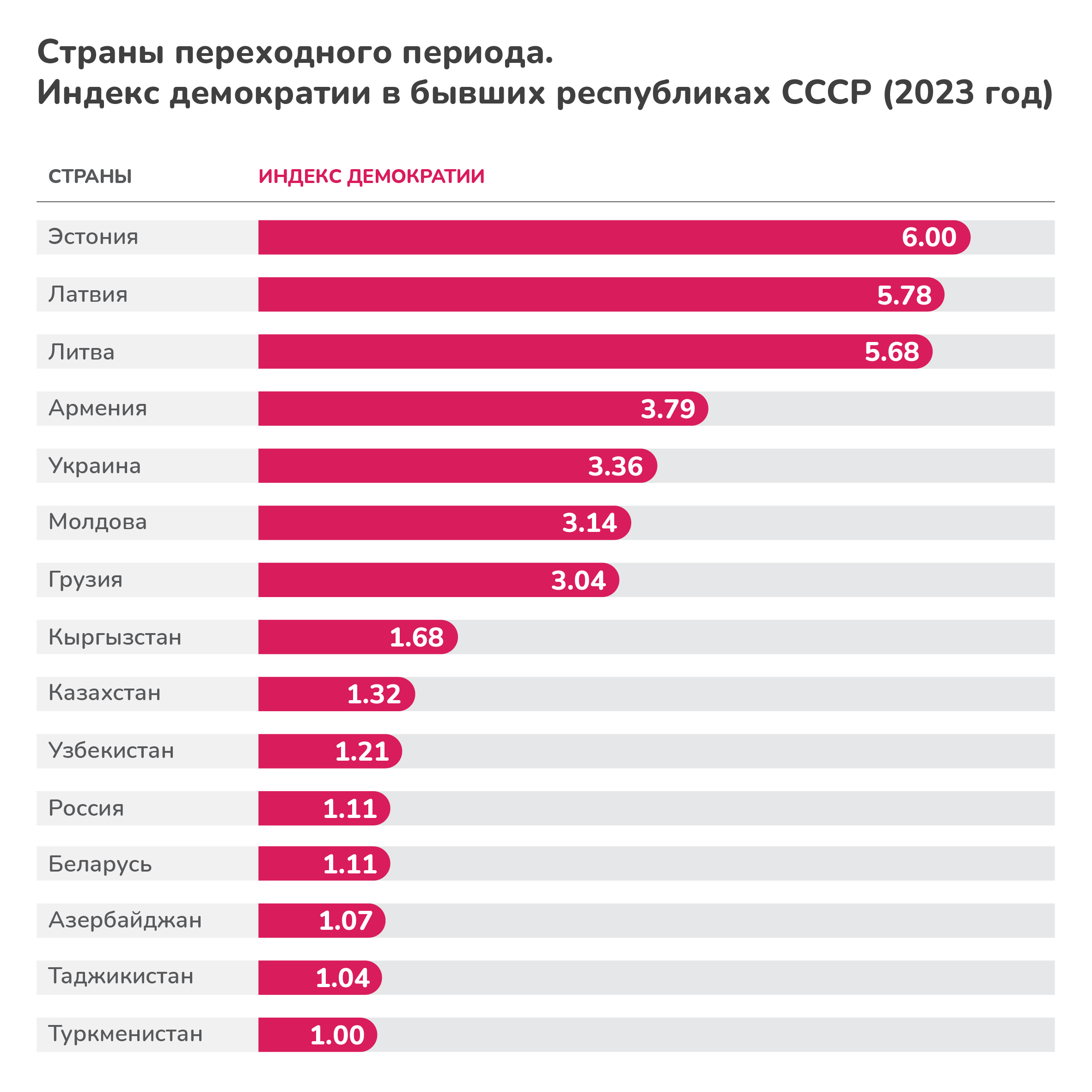 В рейтинге восемь из 29 стран остались в худшей категории «укрепившегося авторитарного режима».