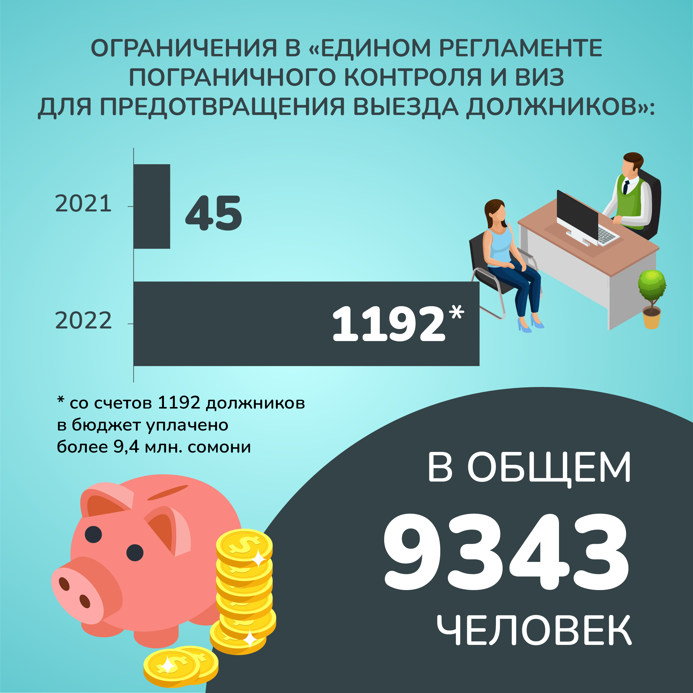 На сегодняшний день через эту систему запрещен выезд 9 тысячам 343 гражданам.