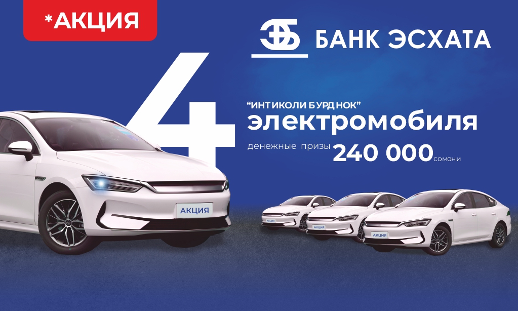 Впервые, в честь 32-летия Государственной независимости Таджикистана, Банк «Эсхата» объявляет акцию «Интиколи бурднок». Теперь при отправке и получении денежного перевода, у вас есть возможность выиграть суперпризы, а именно: