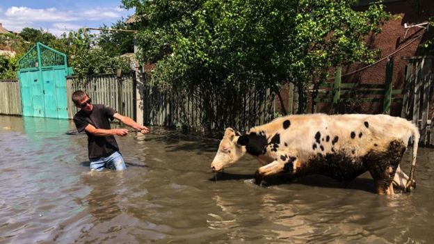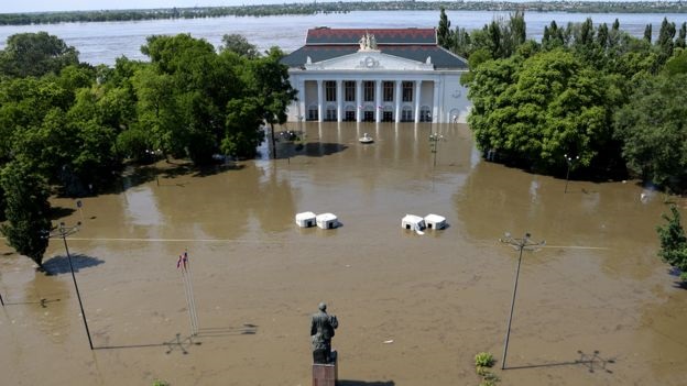 В результате обрушения ГЭС массивы воды пошли вниз по Днепру, и в области затопления оказалось около 30 населенных пунктов по обоим берегам реки, контролируемым как Украиной, так и российской армией.
