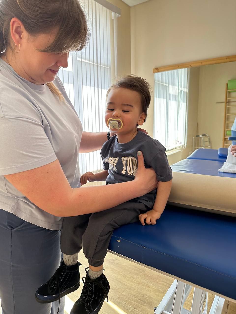— Каждый день мы проводим в клинике около пяти часов, его заново учат поднимать руки, держать голову. Ножки ему выпрямляем, заказали специальные корсеты, чтобы он мог сидеть и стоять, чтобы чувствовал и знал, что это такое. Потом ходим к логопеду, эти занятия помогают ему жевать, говорить. Делаем ему массаж с грязевыми аппликациями для мышечного тонуса и токовый массаж. Проходим постоянные осмотры у врача, — рассказывает Манижа.