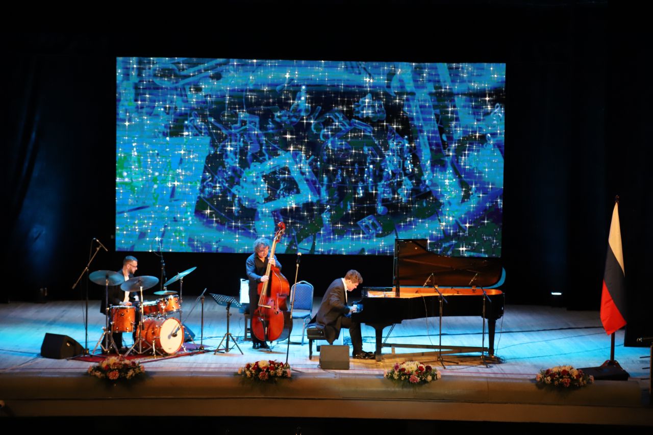 Во второй, джазовой части к пианисту присоединились джазовые музыканты Андрей Иванов (контрабас) и Александр Зингер (ударные). Трио исполнило несколько интересных джазовых импровизации на рапсодии Джорджа Гершвина, Эдвард Грига «В пещере горного короля», а также собственную импровизационную балладу Дениса Мацуева.