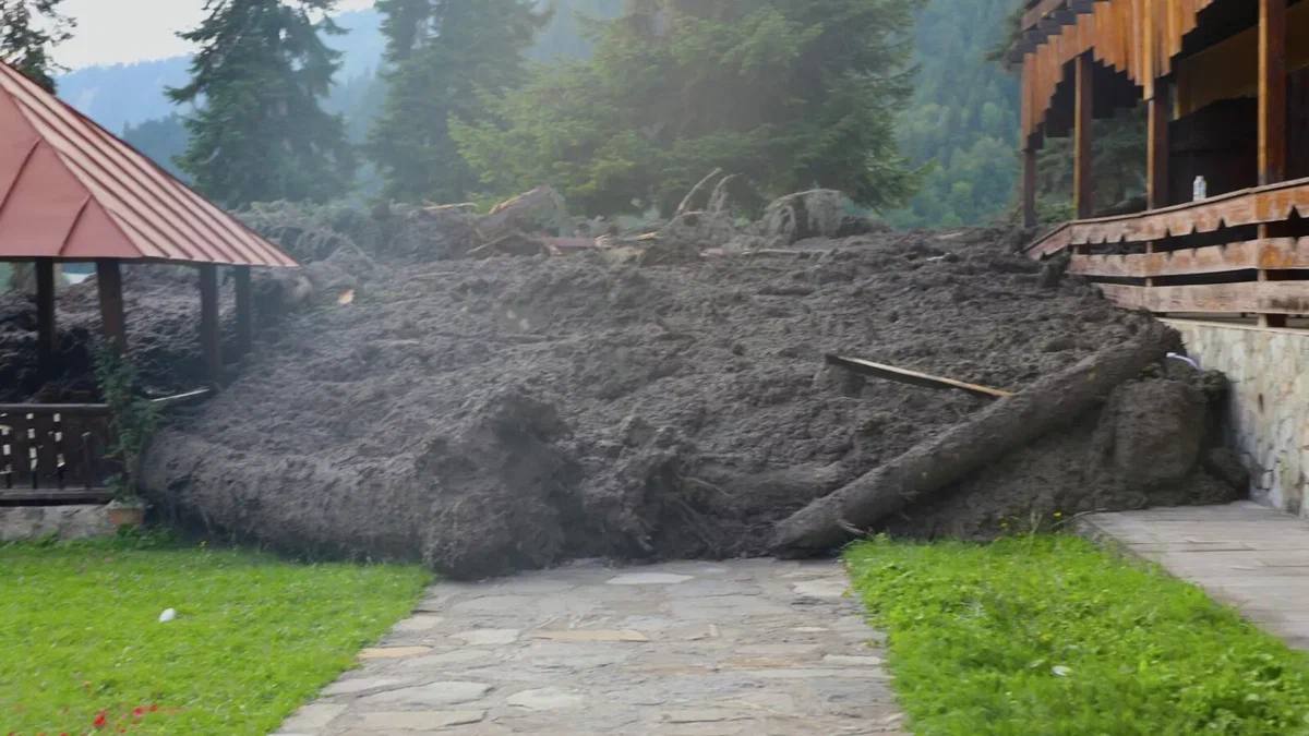 Оползень сошел на высокогорное село Шови вечером 3 августа. Земля накрыла двор близлежащей гостиницы и несколько туристических коттеджей. Сотни людей были эвакуированы.
