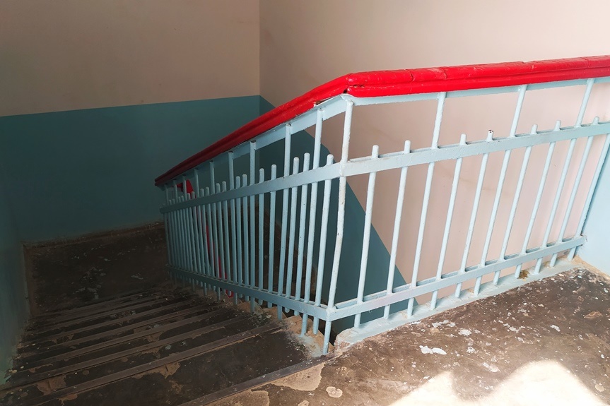 Несколько лет назад по плану облагораживания города в округе красили все жилые дома. Тогда по многократным просьбам администрации общежития мастера от районной мэрии всё же пришли. Но покрасили лишь небольшой участок здания на фасадной части, оставив начатое по неизвестным никому причинам.