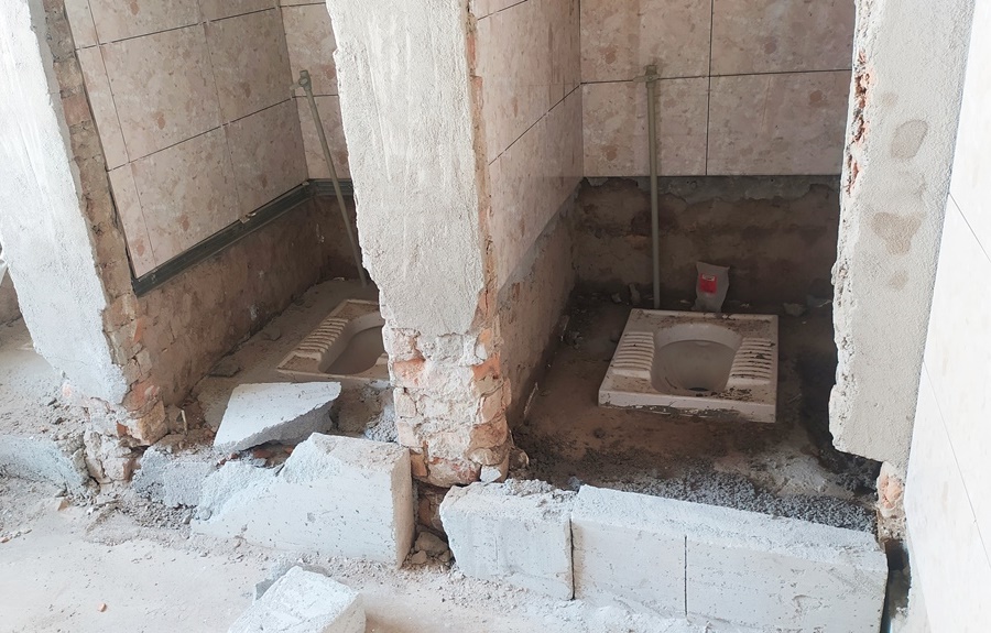 Ремонтные работы начались в срок и продолжаются до настоящего времени. Результаты очевидны: стены и полы аккуратно покрашены, потолки выбелены, сделан монтаж электропроводки, установлено 60 пластиковых окон, мойки, туалеты и душевые выложены новым кафелем, установлены новые унитазы.