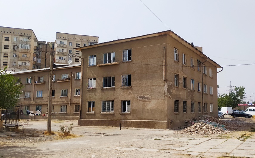 Ещё три года назад тыльная сторона здания была без штукатурки, но не так давно ее удалось привести в достойный вид. Со стороны фасада, наконец, установили таблички на русском и таджикском языках о том, что это общежитие для глухонемых.