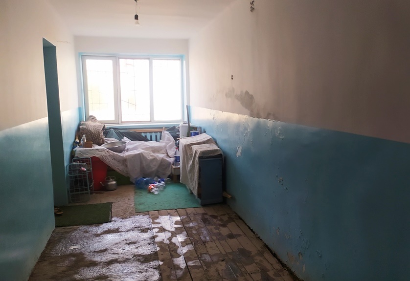 Обшарпанные стены, потолки и пол, протекающая крыша – вот так выглядело общежитие для слабослышащих людей изнутри. Санузел и душевая работали только на одном из трёх этажей левого крыла.
