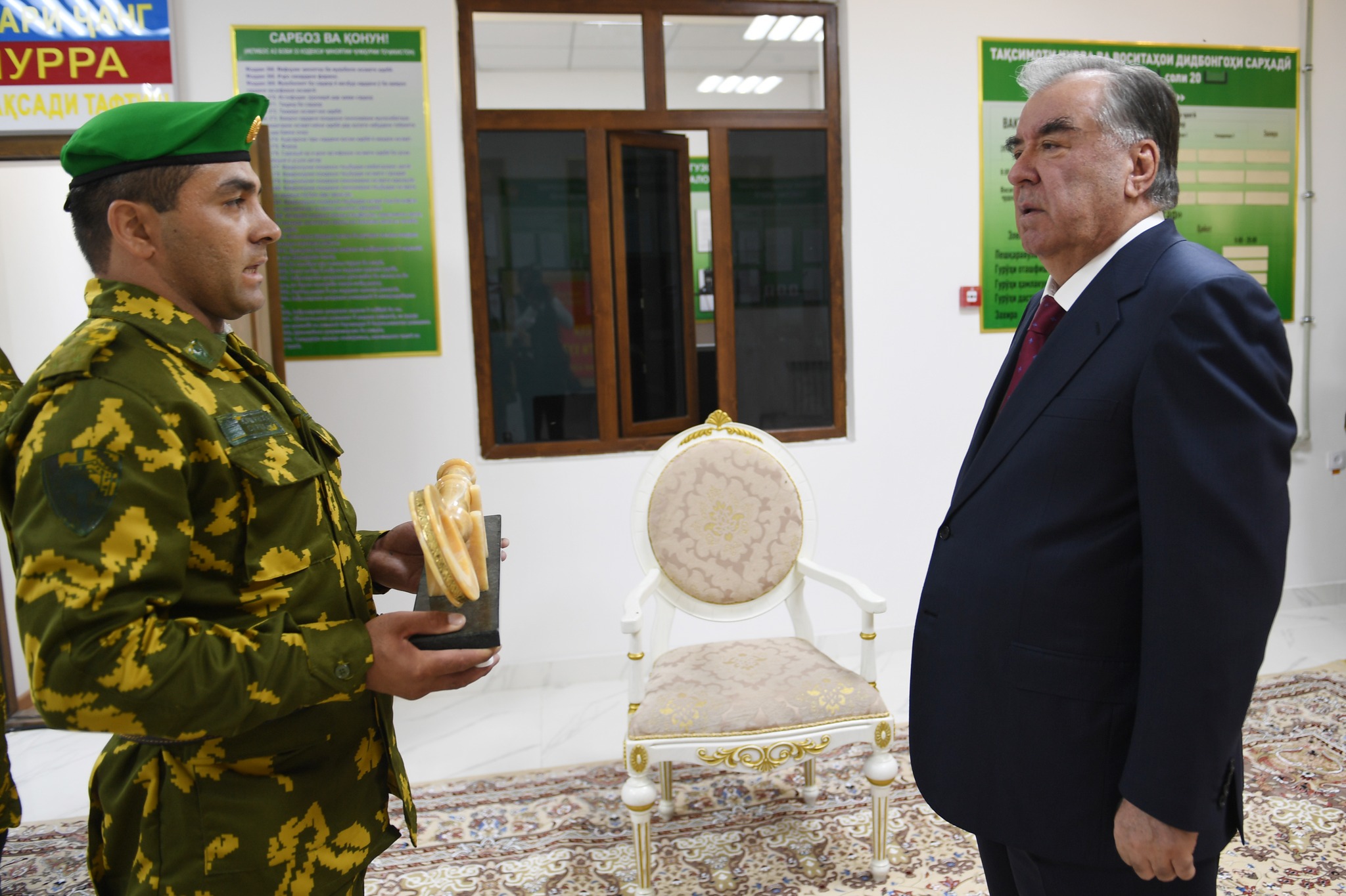 Эмомали Рахмон пообщался с офицерами и солдатами на недавно построенной заставе.