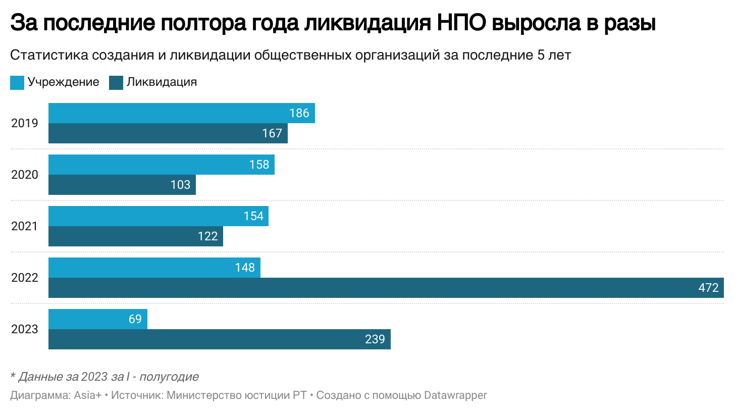 Споры о роспуске общественных организаций в Таджикистане ведутся уже несколько лет. Особенно остро этот вопрос встал после событий в ГБАО в 2022 году. Официальная статистика также свидетельствует о том, что после этих событий многие общественные организации были ликвидированы.