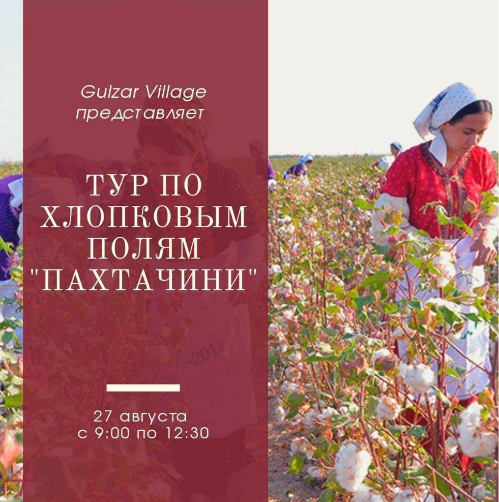 Если вы вдруг соскучились по временам своего студенчества, когда вас каждую осень отправляли на сбор хлопка, то у Gulzar Village для вас есть приятное предложение! Авторский тур на хлопковое поле состоится 27 августа, а сбор у театра оперы и балета им. Айни назначен на 9:00.