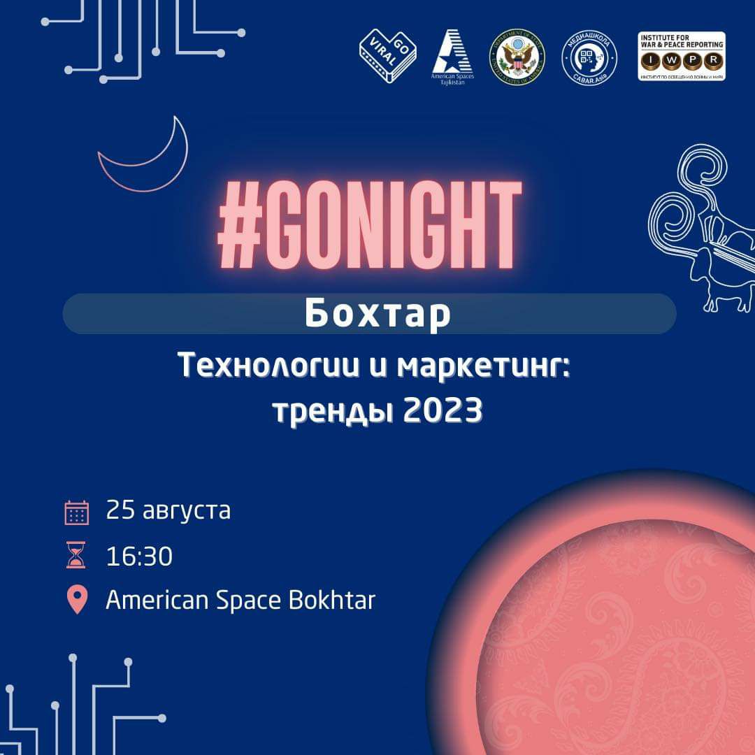 В городе Бохтар в Культурном центре «Бактрия» 25 августа в 16:30 состоится GoNight – очередное мероприятие от Go Viral, посвященное успешному внедрению IT в бизнес и эффективному ведению маркетинга. В рамках мероприятия спикеры поделятся своими секретами.