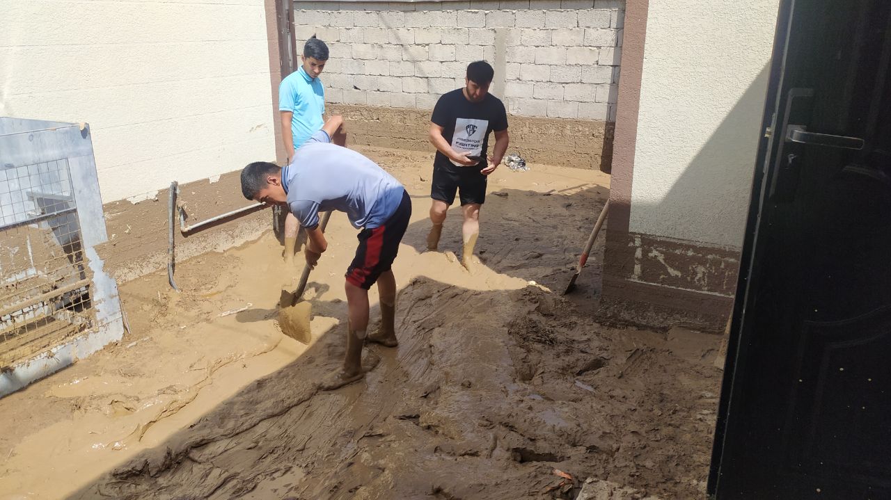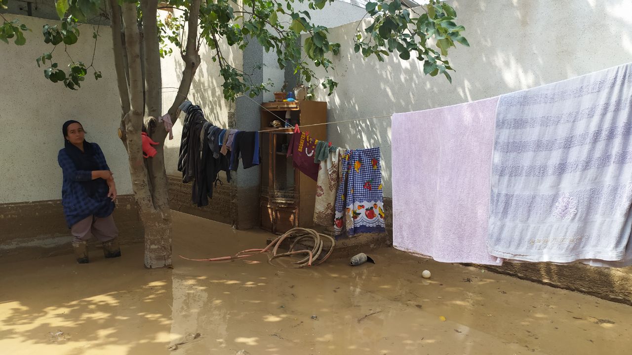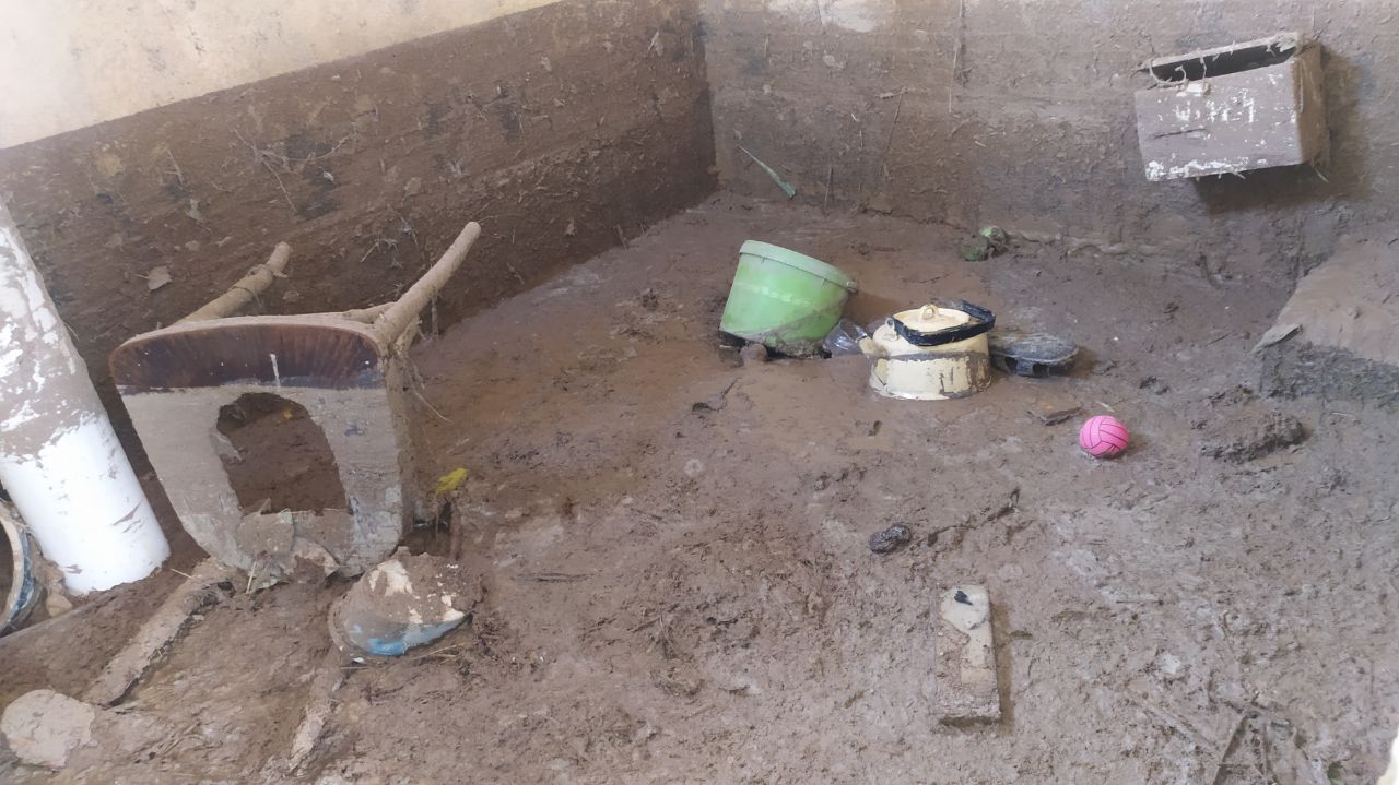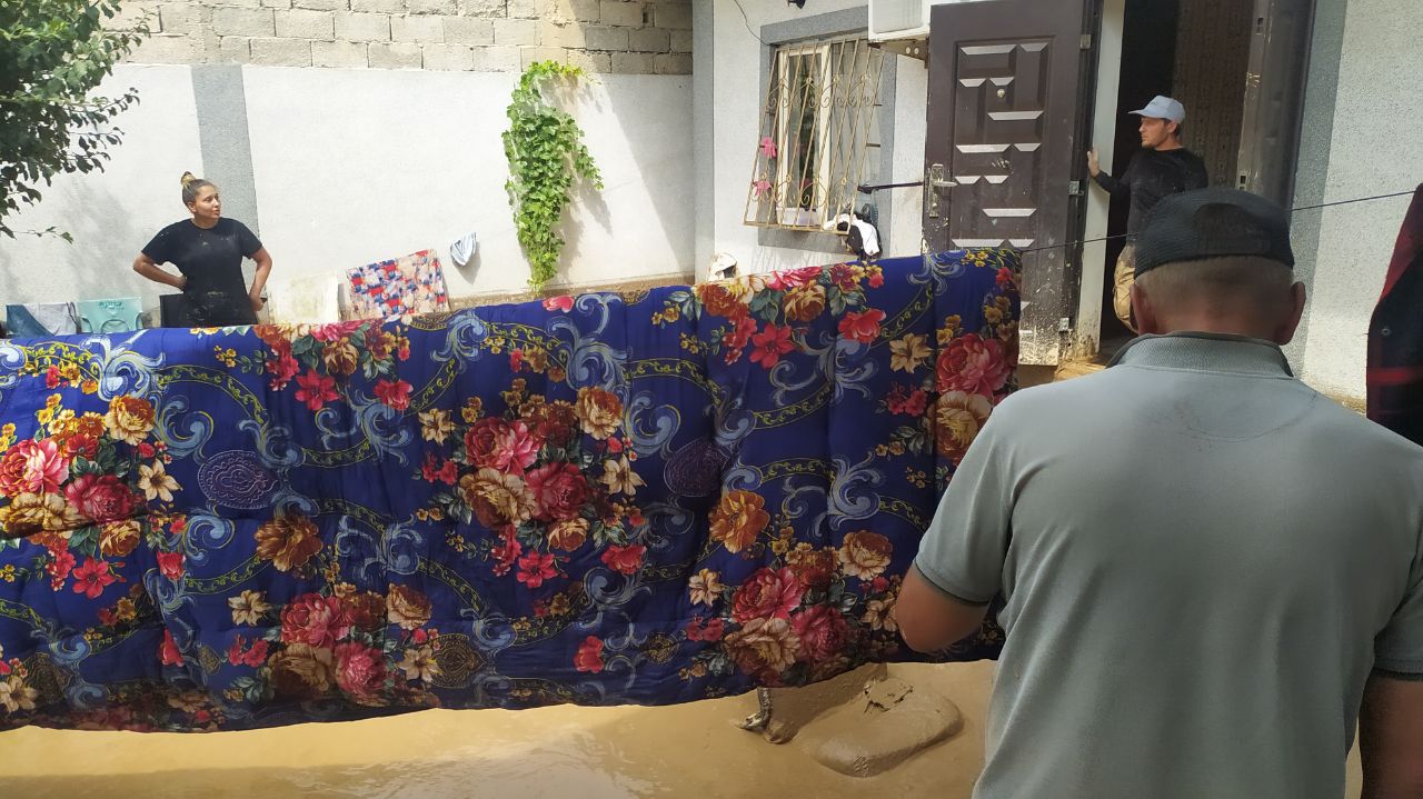 Грязевые потоки смыли деревья, запасы дров и заборы. Дворы двух частных домов разделяла стена из бетонных кирпичей, но стихия превратила всё в одно большое хавли.