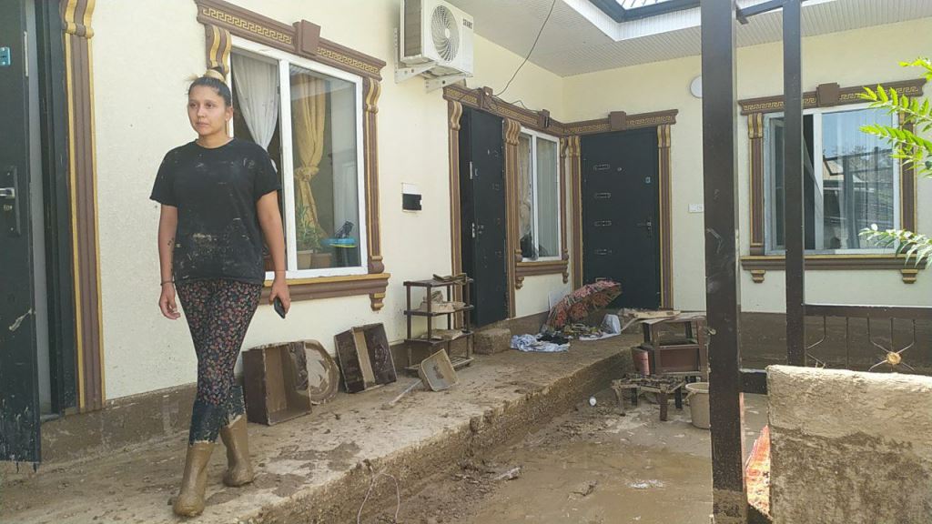 «Смотрите, вот половина разрушенной стены с крышей. Владелец этого дома – Джурабек, страдающий сахарным диабетом, по крыше хозяйственной постройки и забору вынес всю свою семью: внучек, жену, детей и невестку, находясь по грудь в воде, – рассказывает Катя. – А ему самому помогли выбраться соседи».