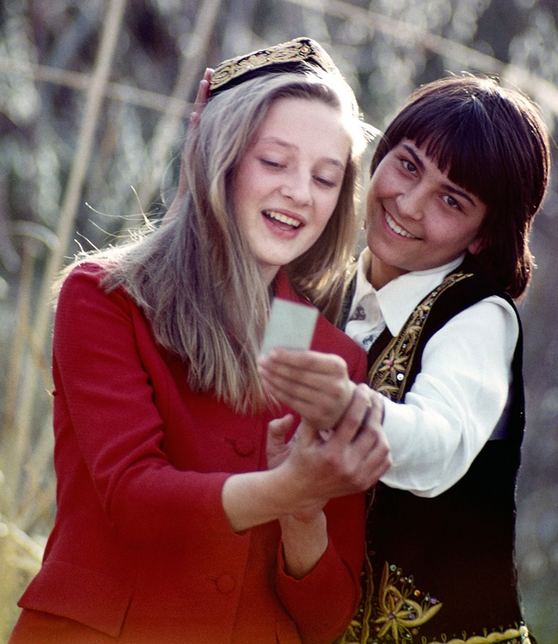 По словам автора фотографии – Геннадия Ратушенко, она была постановочной. Он снимал ее вместе с другом Александром Ирисметовым на Варзобе. Пригласили для съемок дочку Ирисметова, Риту, и ее подругу, Лену Дарющенко. Рита должна была изобразить таджикскую девочку, а Лена – русскую. Национальный таджикский костюм взяли напрокат в гостинице «Душанбе».