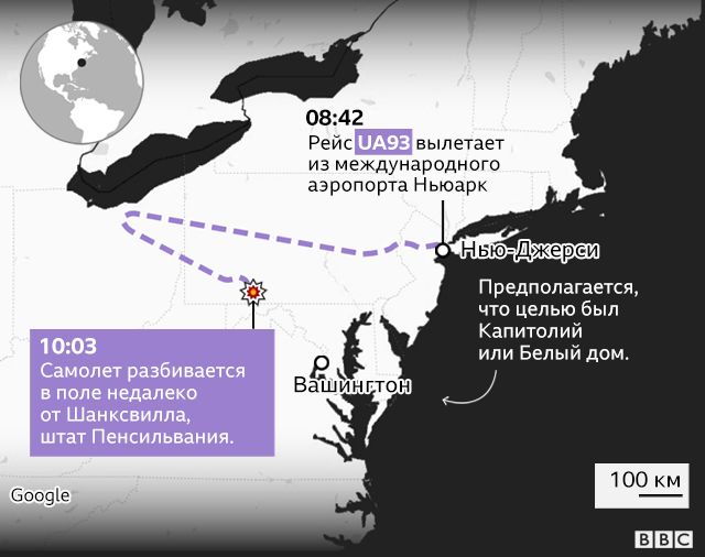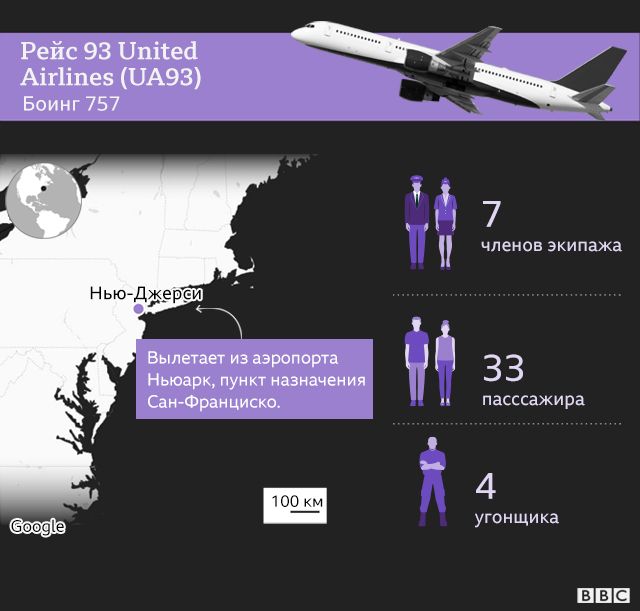Между тем, авиарейсы по всей стране взлетают, как обычно. Среди них — четвертый и последний самолет, захваченный в тот день.