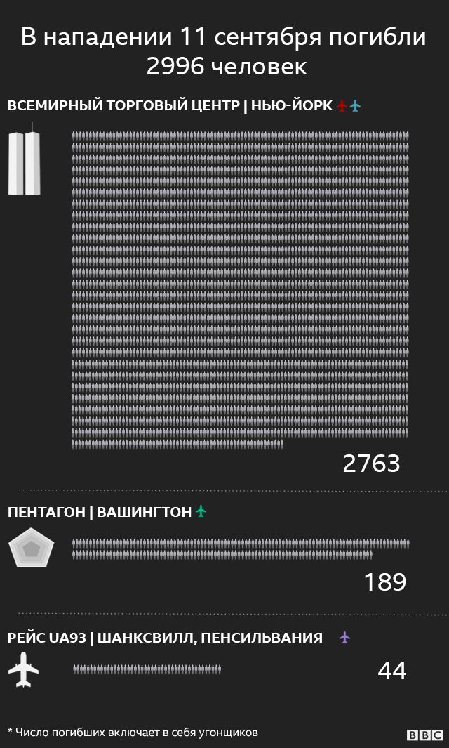 Нападения 11 сентября, в результате которых погибли 2996 человек, остаются крупнейшей террористической атакой на территории США, и ее последствия ощущаются по сей день.