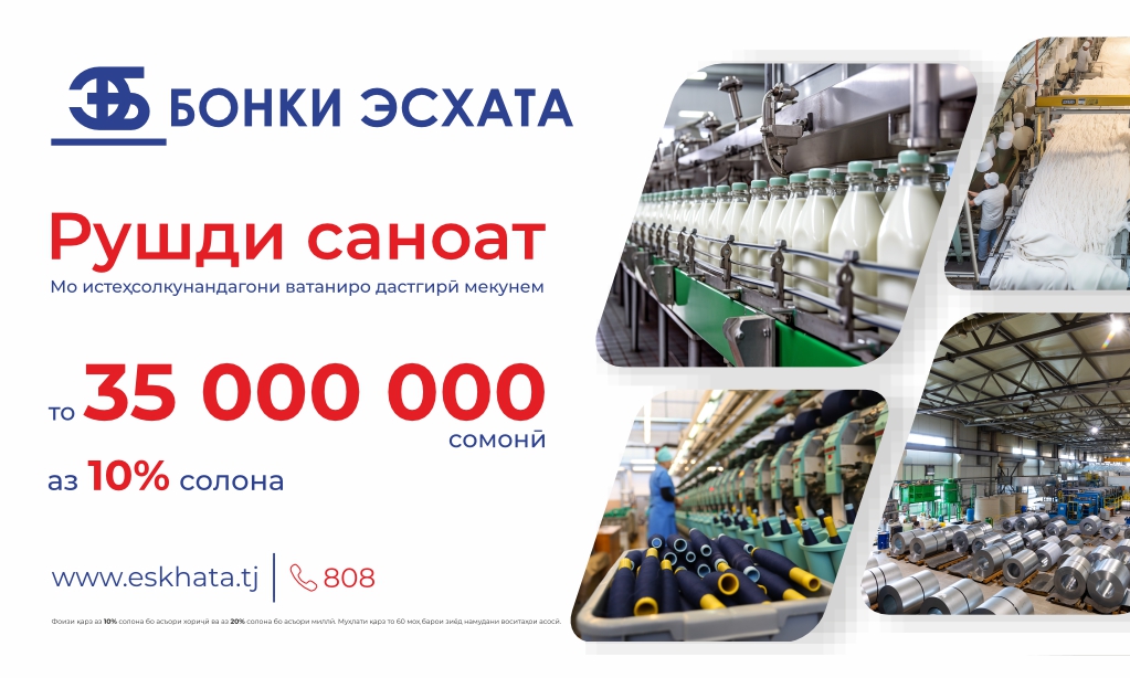 Банк всегда стремится поддерживать отечественное производство. За 8 месяцев текущего года Банк «Эсхата» выдал сумму кредита в размере 2 544 921 876 сомони.
