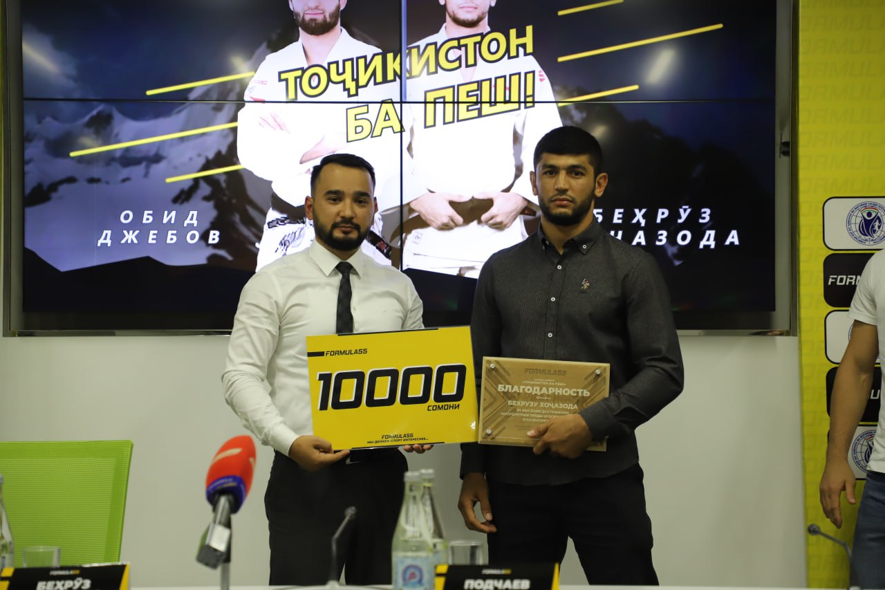 Компания «Formula 55» в рамках своего проекта «Тоҷикистон ба пеш!» наградила очередного спортсмена, чемпиона мира по самбо 2017 года и серебряного призера Hungary Masters 2023 Бехруза Ходжазода.