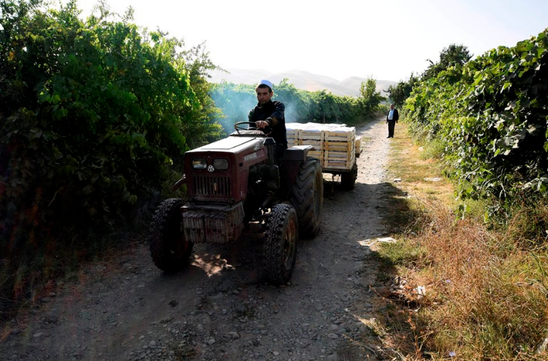 У фермера Ильхома более 4 га виноградников. Морозы погубили почти весь его урожай, и в этом году он усиленно трудится, чтобы восстановить поврежденные лозы.