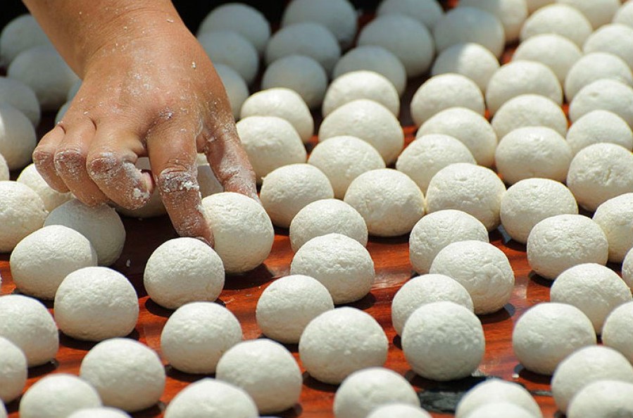 Курут — это продукт, который представляет собой шарики из засушенного коровьего молока с добавлением соли. Он изготавливается из так называемой «сузьмы», сквашенного до творогообразной массы молока.