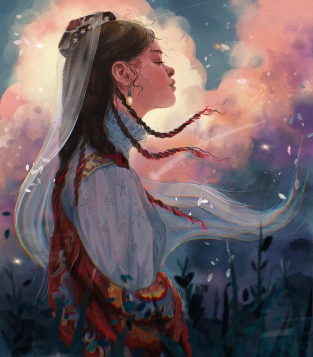 Одним из основных тематических направлений в работах девушки являются мужчины и женщины в национальных одеяниях. Она с легкостью передает красоту и изящество этнической культуры, воссоздавая ее в своих произведениях. Однако, художница также умело воплощает и другие персонажи в более современной стилистике, сохраняя при этом ореол мечтательности, который окружает ее работы.