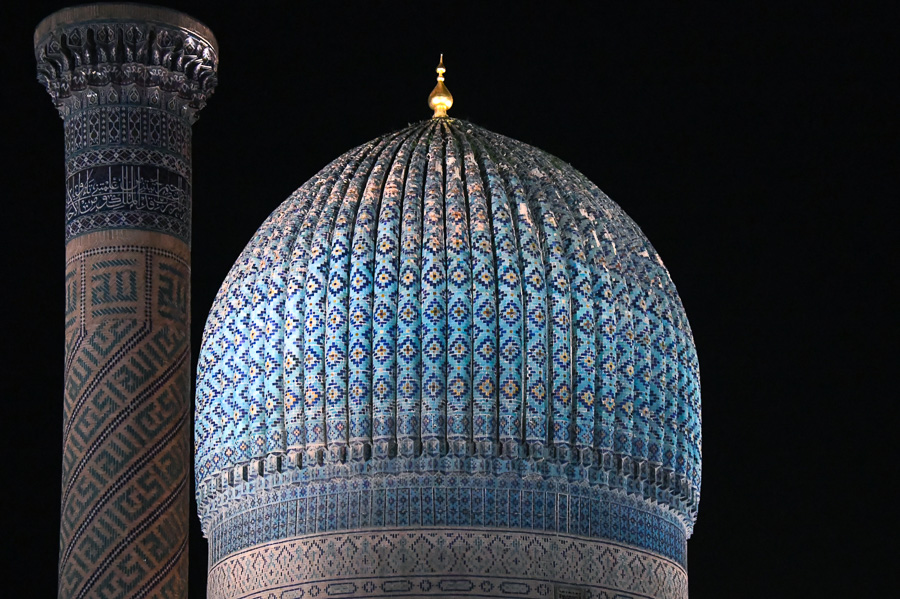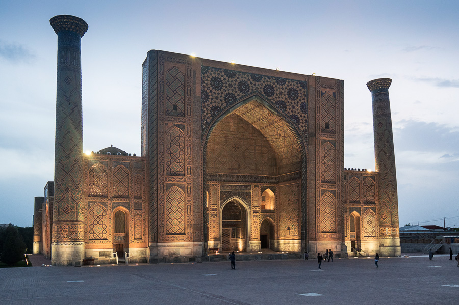 Если отправиться от Биби-Ханым по пешеходной улице на юго-запад, в старую часть города, то, миновав Чорсу – в прошлом купольный рынок, а сегодня – галерею изобразительного искусства, можно попасть на главную городскую площадь – Регистан – где сложился ансамбль из медресе Шер-Дор, Тилля Кари и Улугбека.