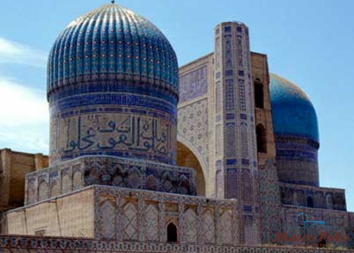 А с холмов Афросиаба открывается вид на роскошную мечеть Биби-Ханым. Даже издали притягивают взгляд ее голубые купола и айваны, покрытые мозаичным ковром керамических плиток.