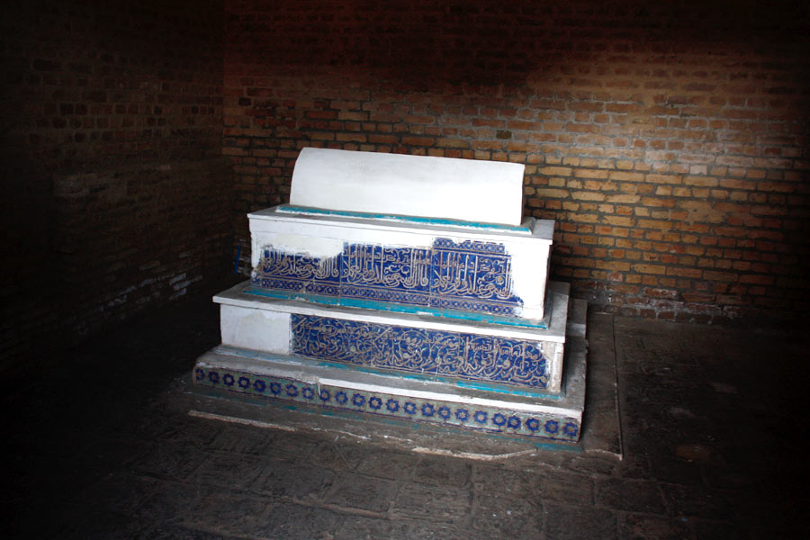 Этот памятник впитал в себя лучшие традиции архитектуры Персии и Средней Азии, ведь его автором был выходец из Исфахана – архитектор Махмуд Исфахани. Цилиндрический барабан мавзолея украшают пояса геометрических орнаментов вверху и внизу, а посередине — геометризованная каллиграфическая надпись. Этот декор выполнен темно-красными, зелеными, белыми и синими глазурованными изразцами по фону из жёлто-розовых облицовочных кирпичей. У купола полностью голубое глазурованное керамическое покрытие.
