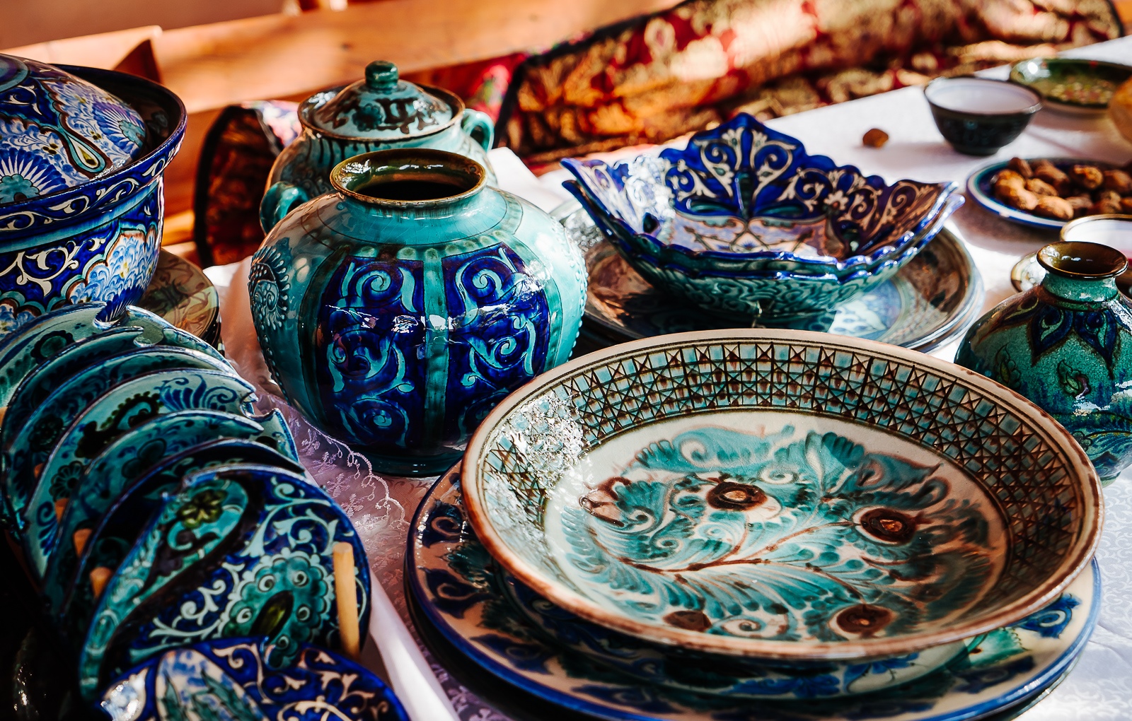 Здесь останавливались купцы, ученые, послы, мастера изобразительных искусств, музыканты и поэты. Путешественники привозили сюда драгоценные товары, тонкие шелка, изящный фарфор, пышный мех, а увозили – пестрые изразцы, изящные одежды, мудрые книги, тяжелый красный бархат и лучшую в Центральной Азии бумагу. И, конечно же, всех восхищала самаркандская керамика.