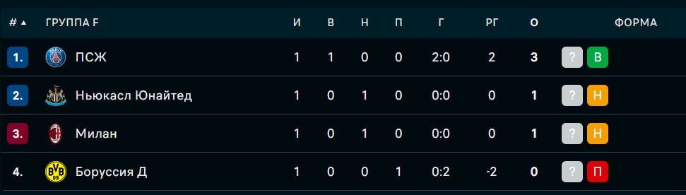 Кто сыграет в группе F в ЛИГЕ чемпионов: Ньюкасл Юнайтед; ПСЖ; Боруссия Дортмунд; Милан.