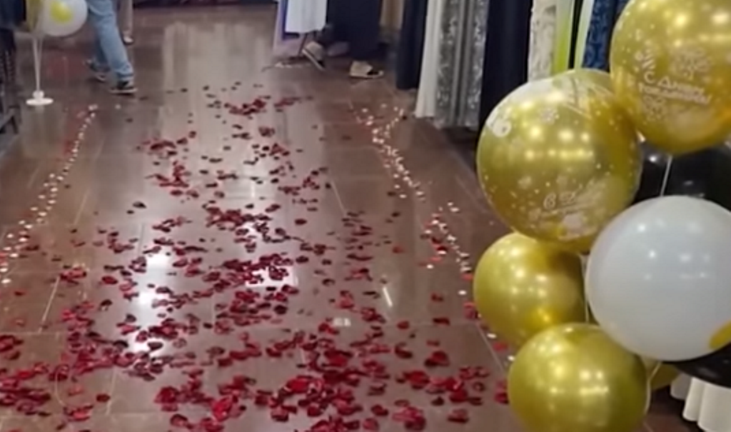 В видеозаписи с этого события, опубликованной в последнем выпуске программы УМВД, видно, что магазин был украшен воздушными шарами и вывеской с надписью "С днем рождения!". На накрытом столе в центре магазина блюда и праздничный торт.