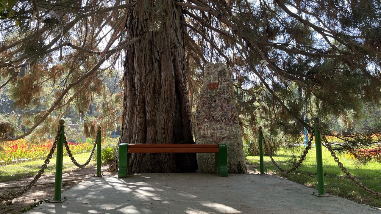 На территории сада расположен Институт ботаники, а у самого входа стоят огромные деревья, высаженные его первыми сотрудниками в середине 30-х годов прошлого столетия. Это старейшие представители флоры ботанической коллекции «Боги Ирам».