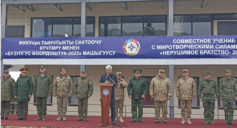Заключительный этап совместных учений с миротворческими силами ОДКБ "Нерушимое братство-2023" прошел 13 октября на базе учебно-тренировочного центра "Эдельвейс" министерства обороны Кыргызстана. В мероприятии принял участие министр обороны Таджикистана, генерал-полковник Шерали Мирзо.