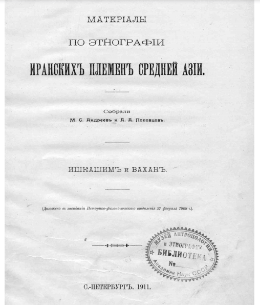 А Михаил Степанович Андреев в своем дневнике, кроме этой встречи с волостным Вахана, добавляет буквально некоторые общие сведения о кишлаках Вахана и Ишкашима.