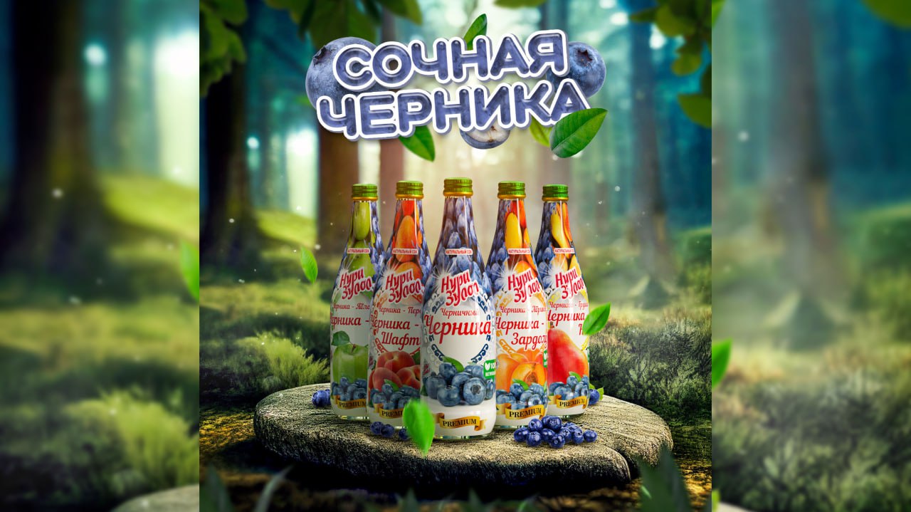 Черничные соки от «Нури Зулол» в стеклотаре представлены в пяти вкусовых сочетаниях: